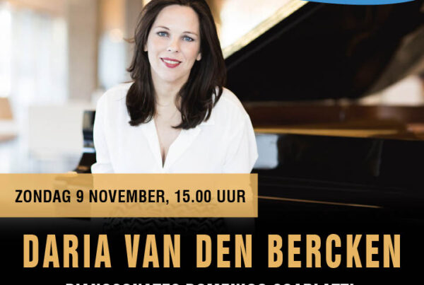 Pianiste Daria van den Bercken brengt de muziek naar de mensen toe. Pianospelend langs de Amsterdamse grachten of aan een hijskraan in Sao Paolo. Ze maakt podcasts en is oprichter en artistiek leider van de Pianoa Bienale. In populaire TED-Talk legt ze uit wat haar drijft. In Muiderberg maakt ze een intieme reis door de wereld van pianomuziek met Domenico Scarlettie, Franz Schubert en Sergej Prokoljev.
