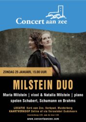 Ze groeiden op in een muzikantenfamilie en speelden samen viool en piano, zodra hun leeftijdsverschil van 10 jaar dat toeliet. Violiste Maria Milstein en pianiste Nathalia Milstein hebben los van elkaar glanzende carrières, maar af en toe vinden ze ruimte in hun drukke agenda’s om samen cd’s op te nemen en te genieten van het maken van hun geliefde kamermuziek. In 2021 waren ze voor het eerst bij ons te gast en we ontvangen ze graag opnieuw. Er is veel gebeurd in de tussenliggende jaren. Nathalia was in 2025 zelfs laureaat in het super prestigieuze Koningin Elisabeth piano-concours. Maria bracht samen met echtgenoot Mathieu van Bellen de Muziekhaven in Zaandam tot bloei, soleert bij grote orkesten en haar Van Baerle Trio is Nederlands meest succesvolle pianotrio.